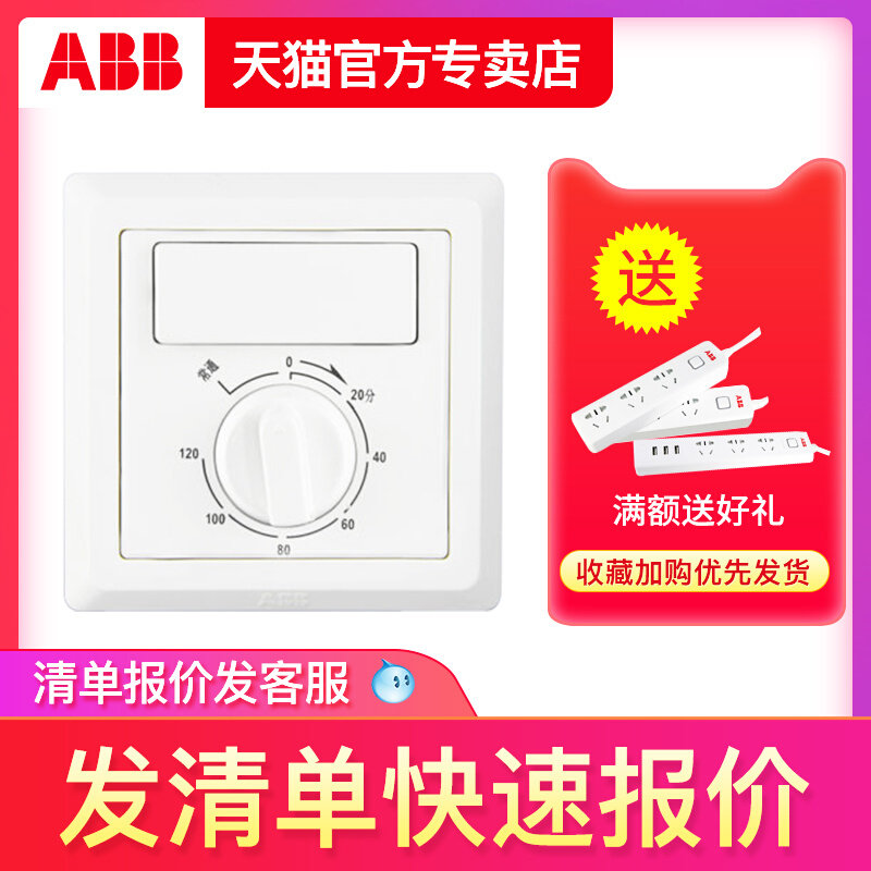 abb定时开关 AE411一开单控86型家用换气扇紫光灯卫生间用德逸白