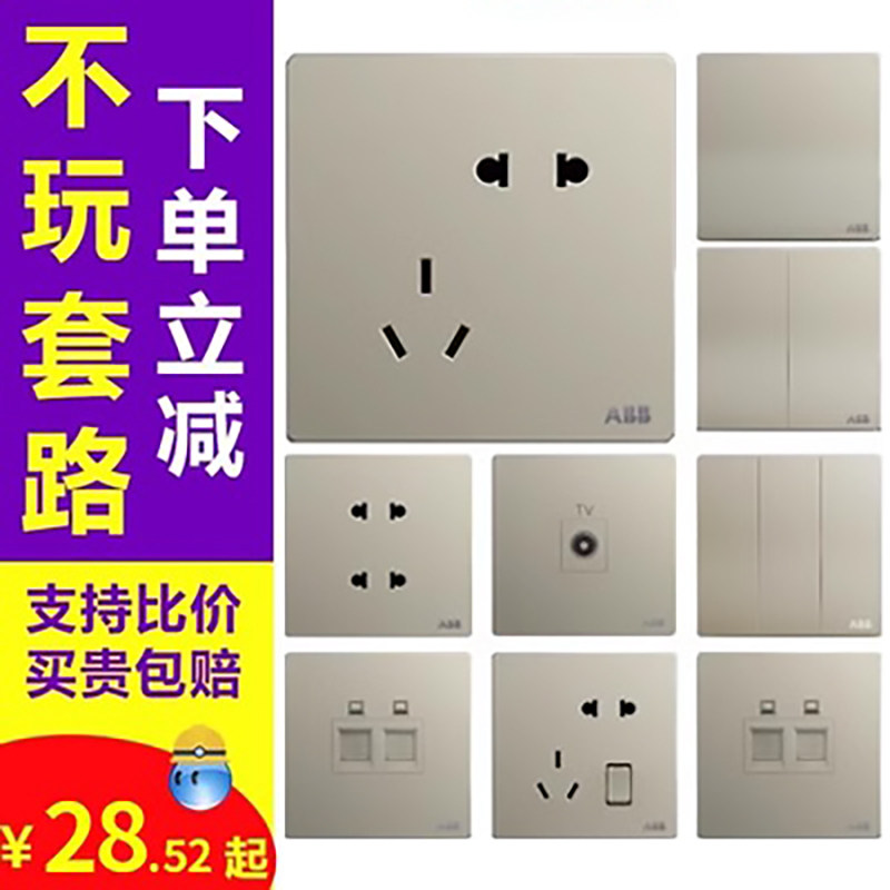 新品ABB开关插座盈致香槟金无框五孔单开双控USB电脑家用86型面板