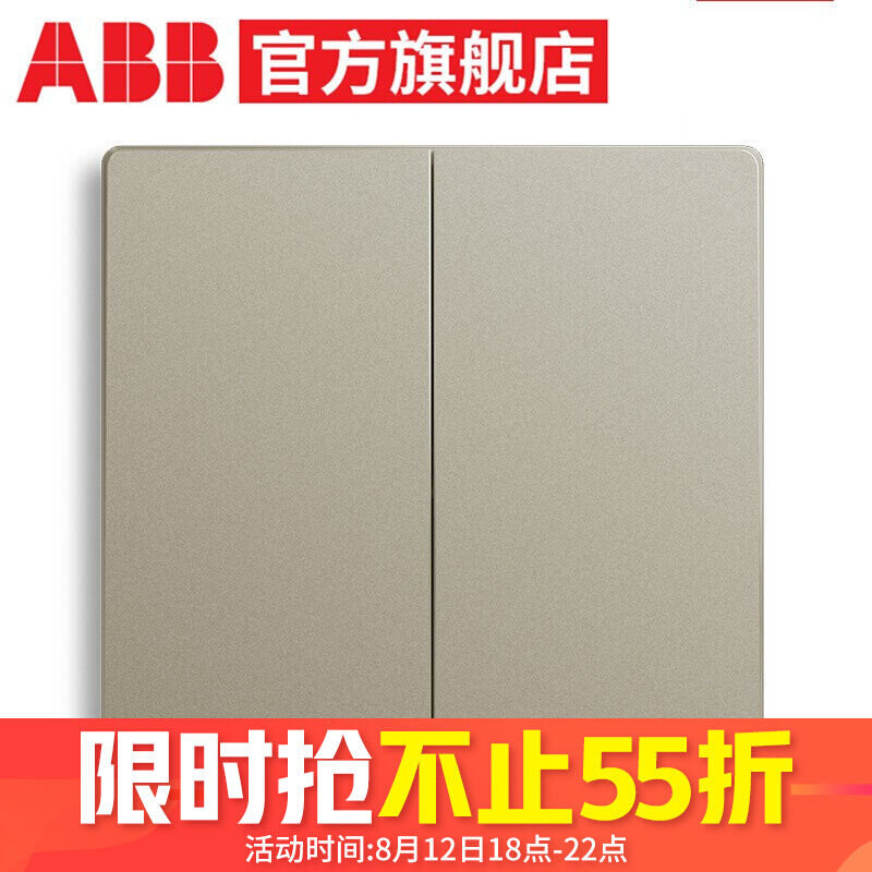 ABB开关插座面板轩致系列香槟银无框86型平面开关单控双控直边开