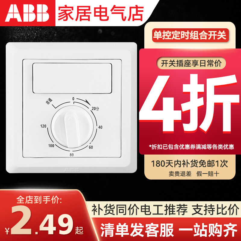 ABB开关面板86型墙壁开关插座德逸雅白单控定时组合开关AE411