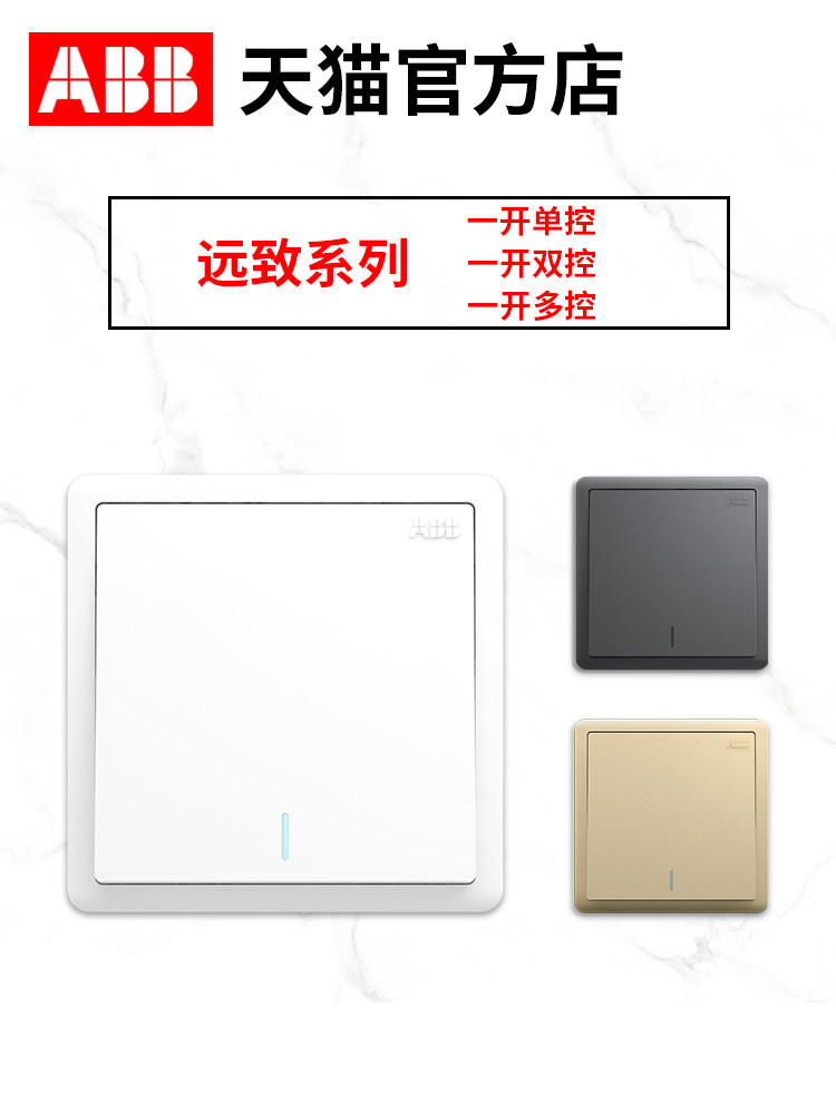 abb开关面板远致一开单控AO101双控105多控119明净白色/金色/灰色