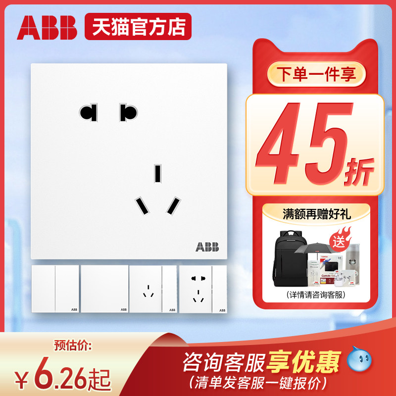 ABB官方旗舰店 远致白家用五孔USB插座带单双控开关插座面板套餐