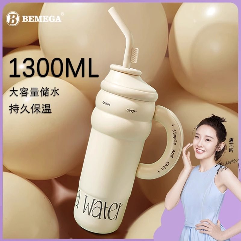 Bemega保温杯男大容量水杯女2023新款高颜值学生吨吨吸管大肚杯子
