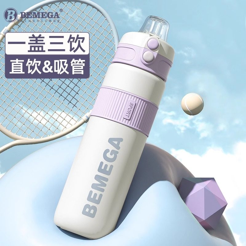 英国Bemega保温杯女生高颜值大容量吸管水杯子316学生运动水壶男