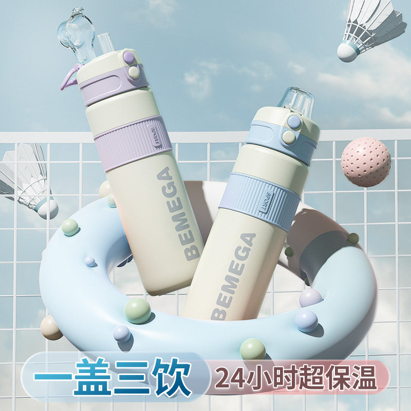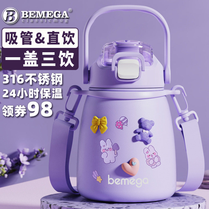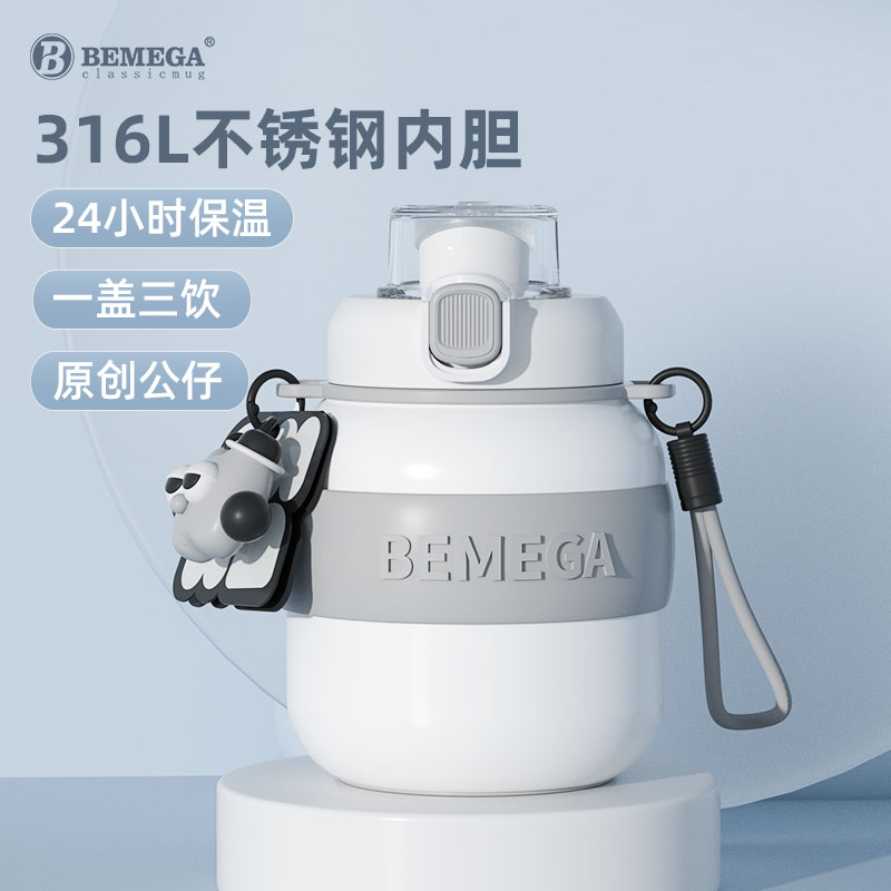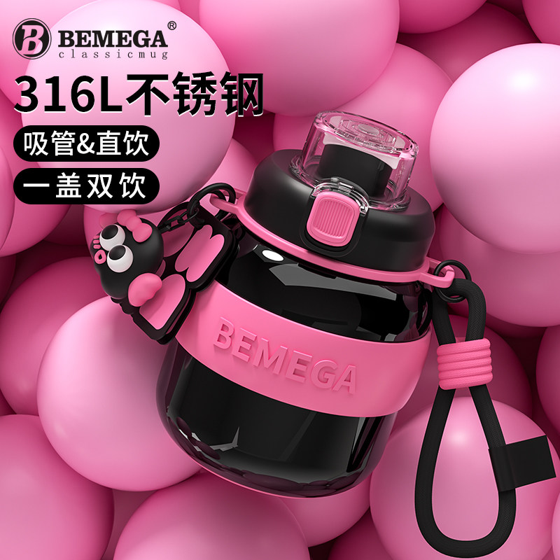 Bemega保温杯女高颜值吸管水杯子316L大容量学生儿童大肚杯23新款