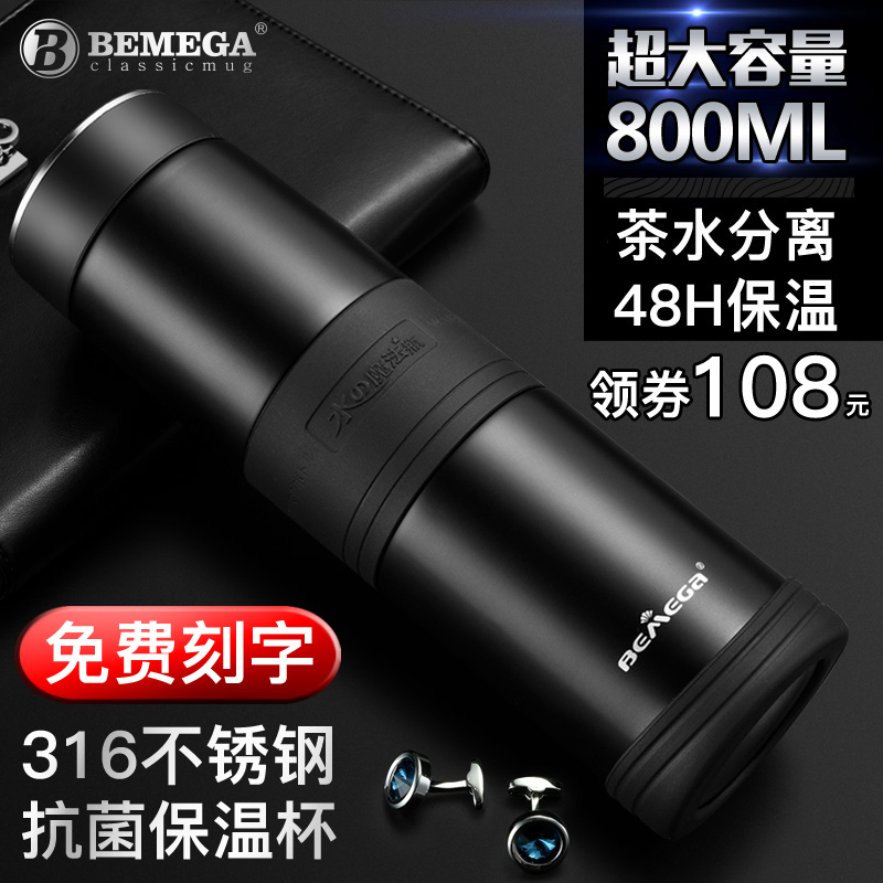 英国Bemega保温杯男士茶水分离泡茶杯子大容量316不锈钢定制水杯