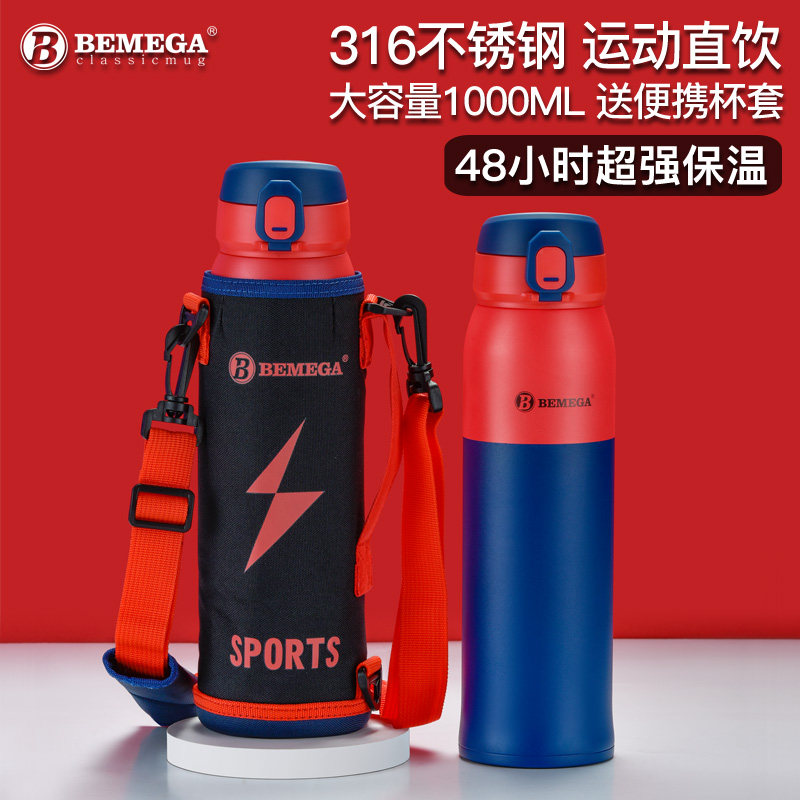 英国Bemega保温杯大容量男女316不锈钢学生便携运动水杯子1000ml