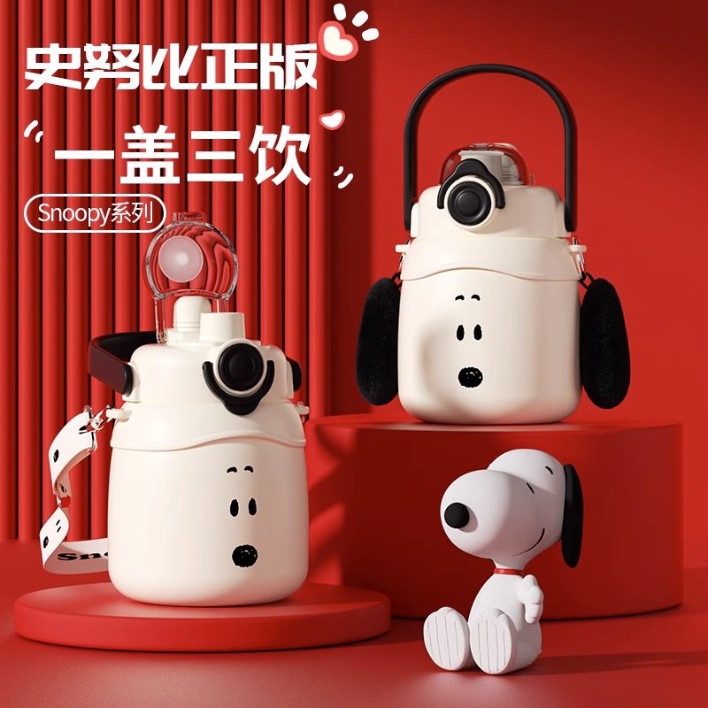史努比保温杯女高颜值吸管水杯子316不锈钢儿童上学专用大肚杯壶