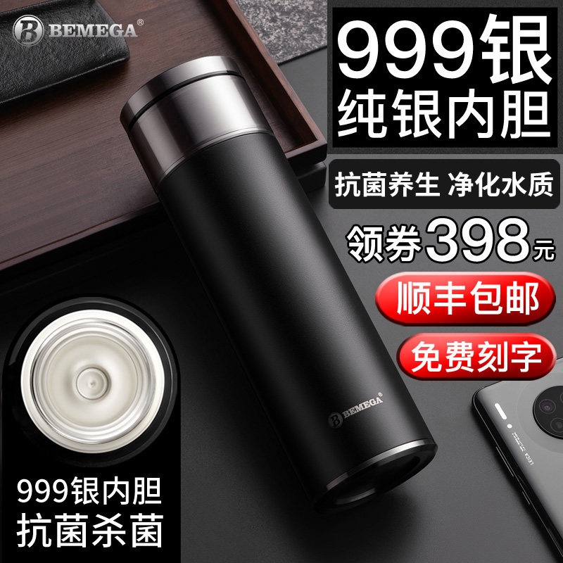 英国Bemega纯银保温杯999银内胆水杯女士男高颜值大容量泡茶杯子