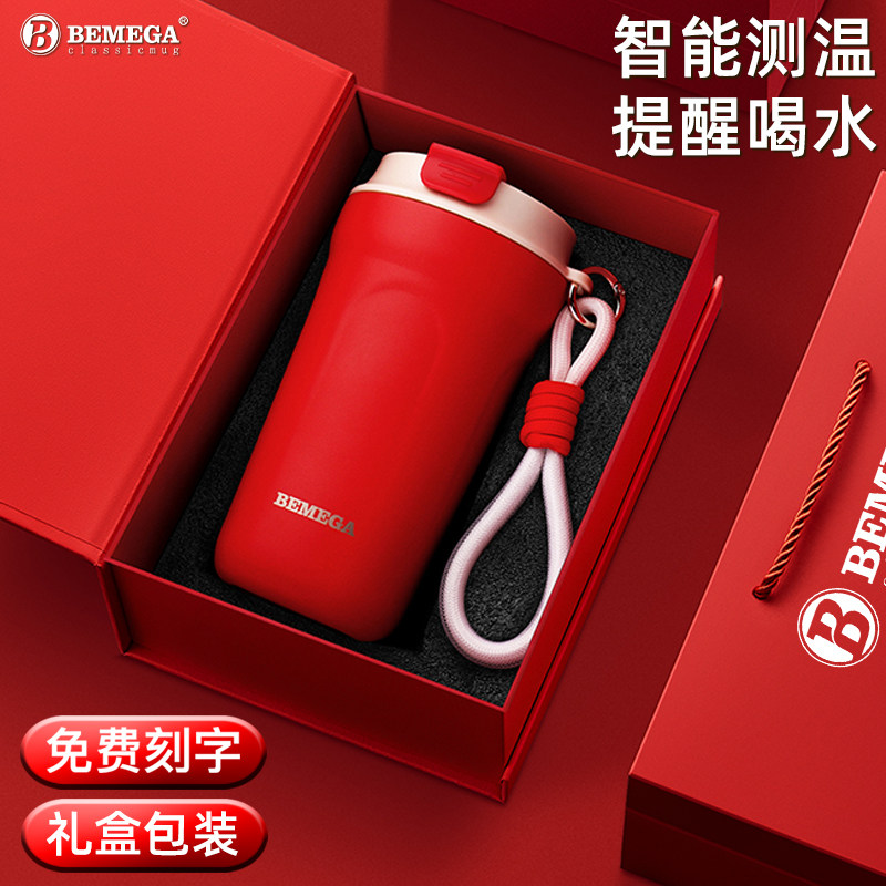 Bemega保温杯女生陶瓷内胆咖啡杯2023新款红色水杯子元旦新年礼物