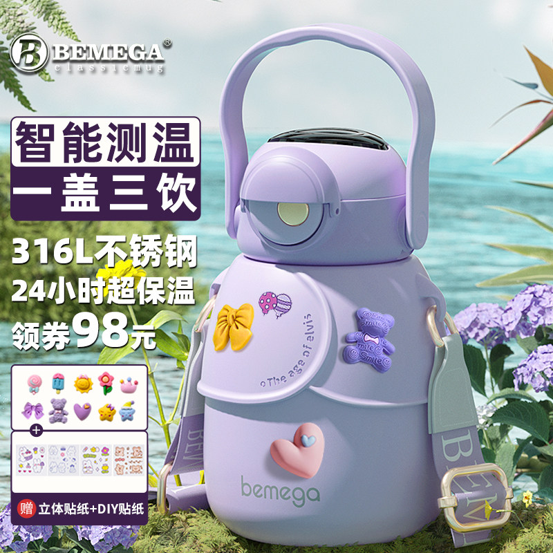 英国Bemega智能保温杯女高颜值大容量316不锈钢水杯子高级大肚杯