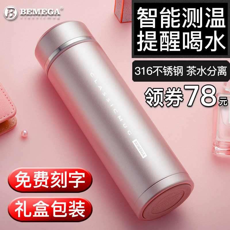 英国Bemega智能保温杯男女316不锈钢泡茶杯子刻字定制印logo水杯