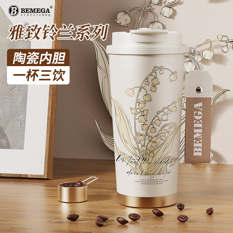 Bemega保温杯陶瓷内胆咖啡杯女生高颜值水杯子2023新款随行杯定制