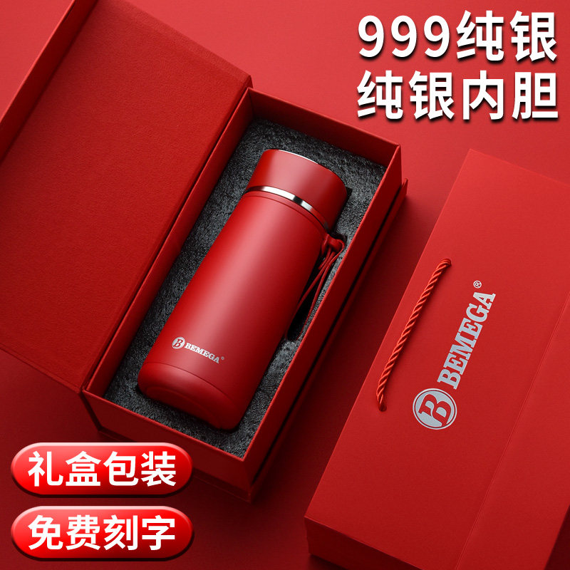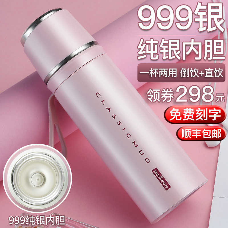 Bemega纯银保温杯女生2023新款999银内胆水杯子元旦新年生日礼物