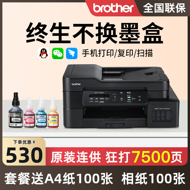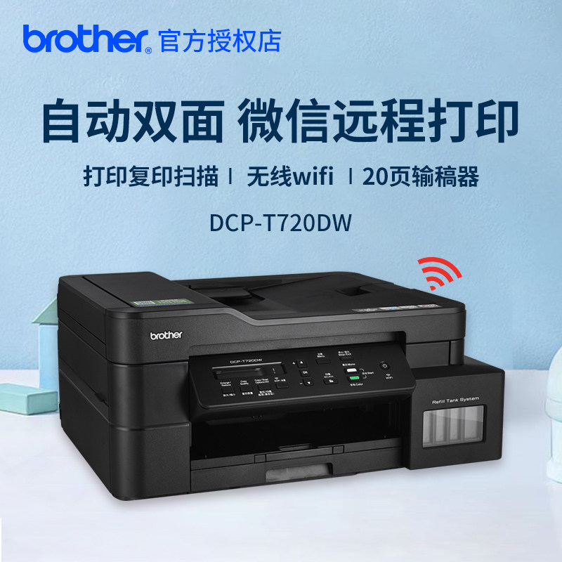 兄弟DCP-T720DW彩色喷墨双面打印机复印扫描一体机手机无线wifi复印扫描家用办公三合一A4微信