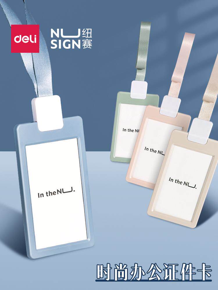 得力纽赛证件卡卡套胸卡透明硬胶证件工作证带挂绳证件套学生校园地铁公交饭卡门禁卡套咬合式绳扣款
