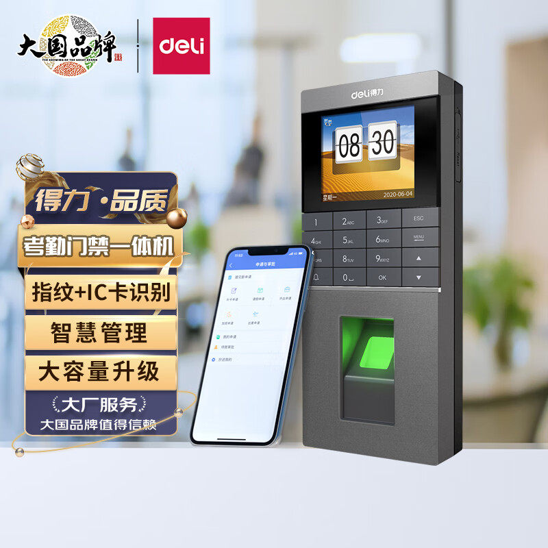得力(deli)指纹考勤门禁一体机支持IC卡门禁机打卡机13752IC