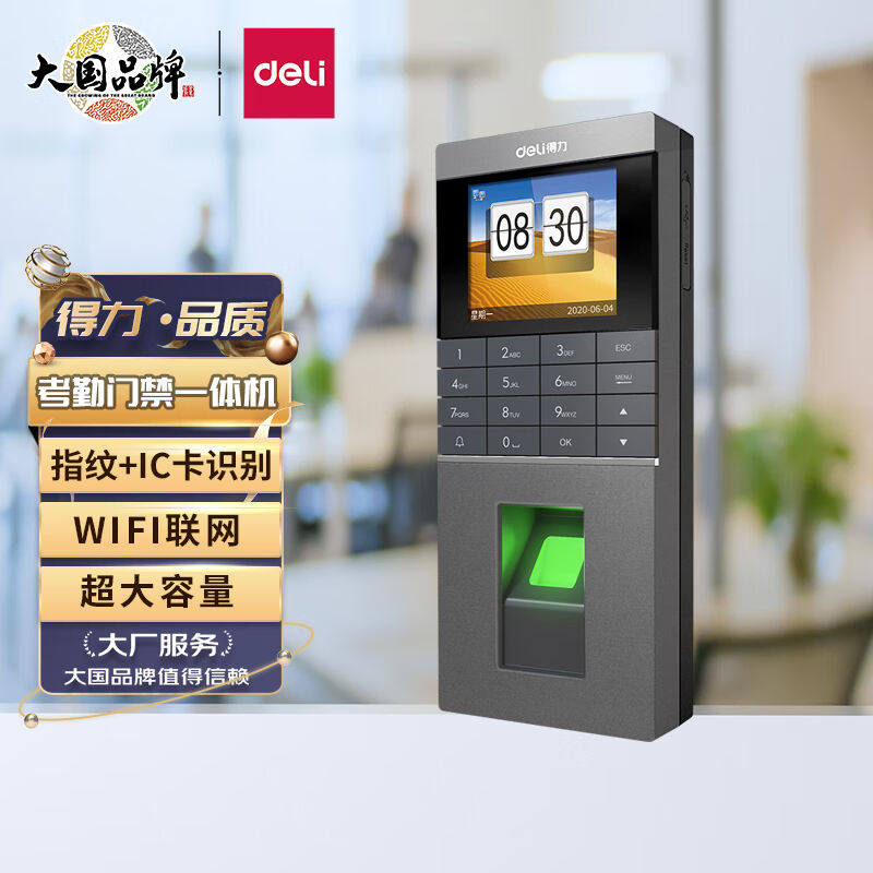 得力(deli)指纹考勤门禁一体机wifi联网远程授权解锁云门禁机打卡
