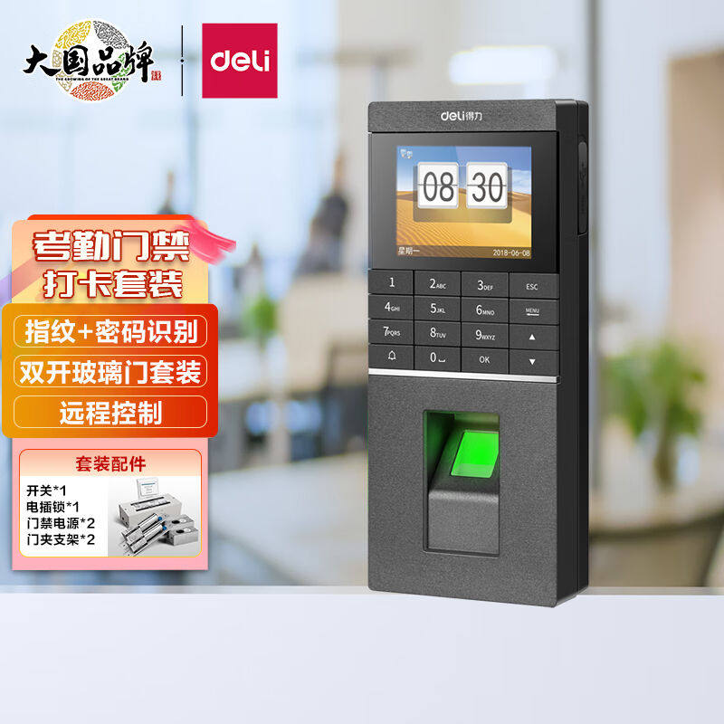 得力(deli)门禁考勤一体机指纹识别打卡机门禁机双开玻璃门套装
