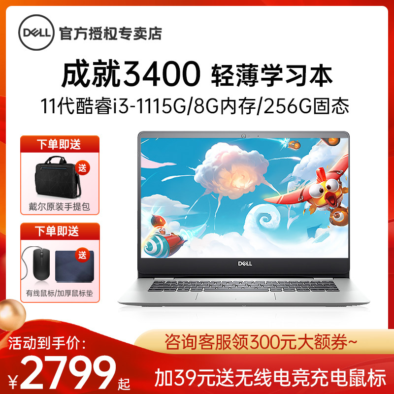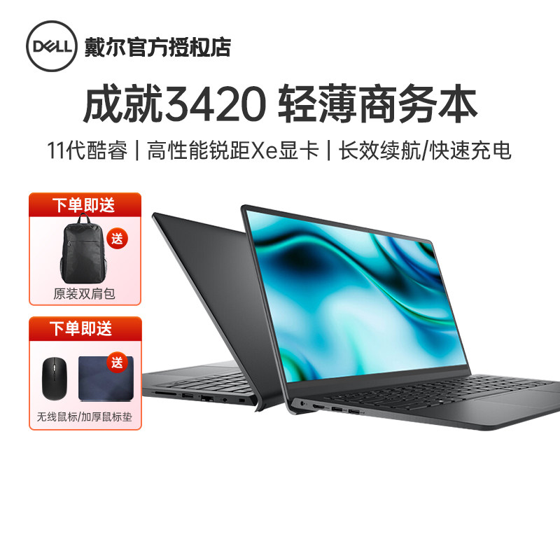 dell戴尔成就3000 3420黑色商务办公11代英特尔酷睿i3 i5轻薄便携大学生2022新款笔记本手提电脑网课灵越3511
