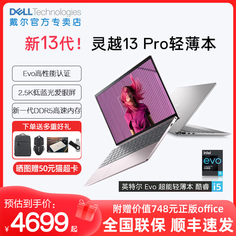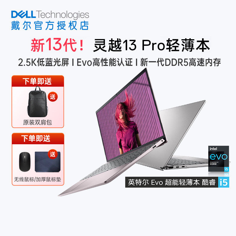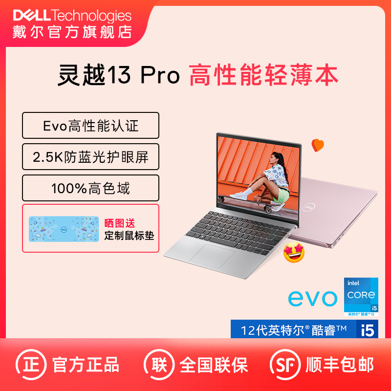 DELL/戴尔 灵越13Pro13英寸12代英特尔酷睿笔记本 轻薄便携电脑商务家用办公粉色5320定制