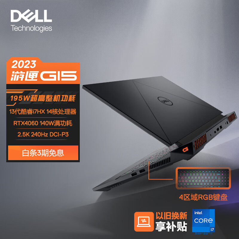 【新品上市】Dell/戴尔G15游匣5530 13代英特尔酷睿i7电竞游戏本RTX4060独显设计师AI画图学生手提笔记本电脑