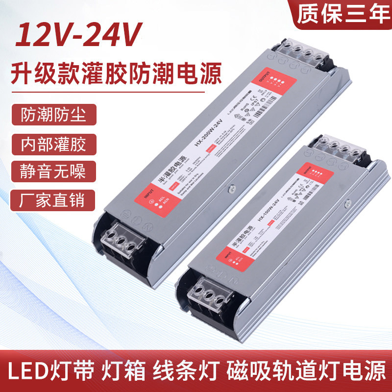 高端led灯带变压器低压cob硅胶线性灯电源24v灯箱长条静音变压器