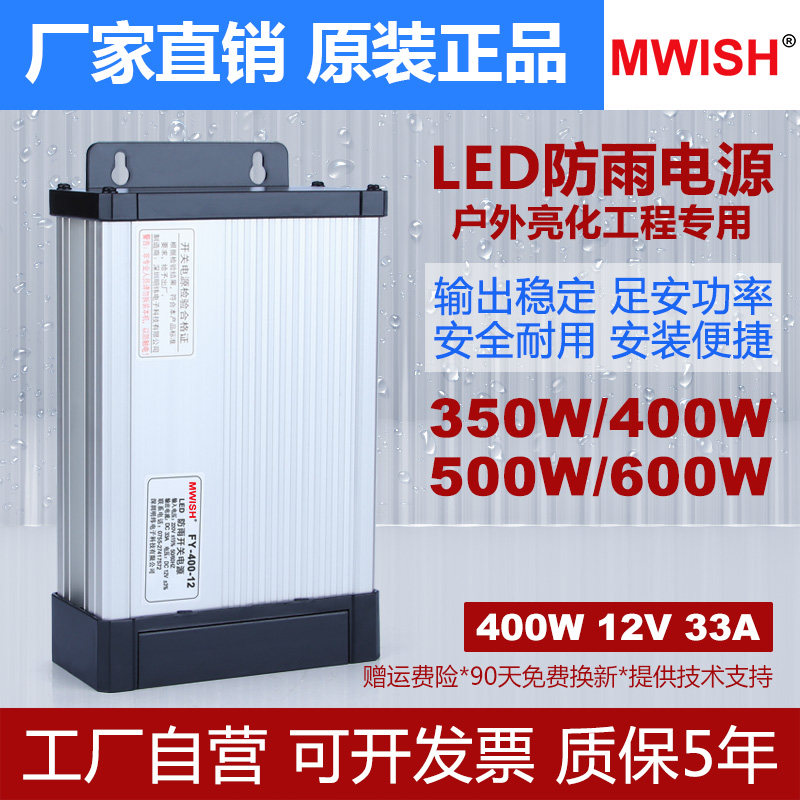 明卓12V33A400W防雨开关电源LED广告灯招牌灯箱标典24V户外变压器