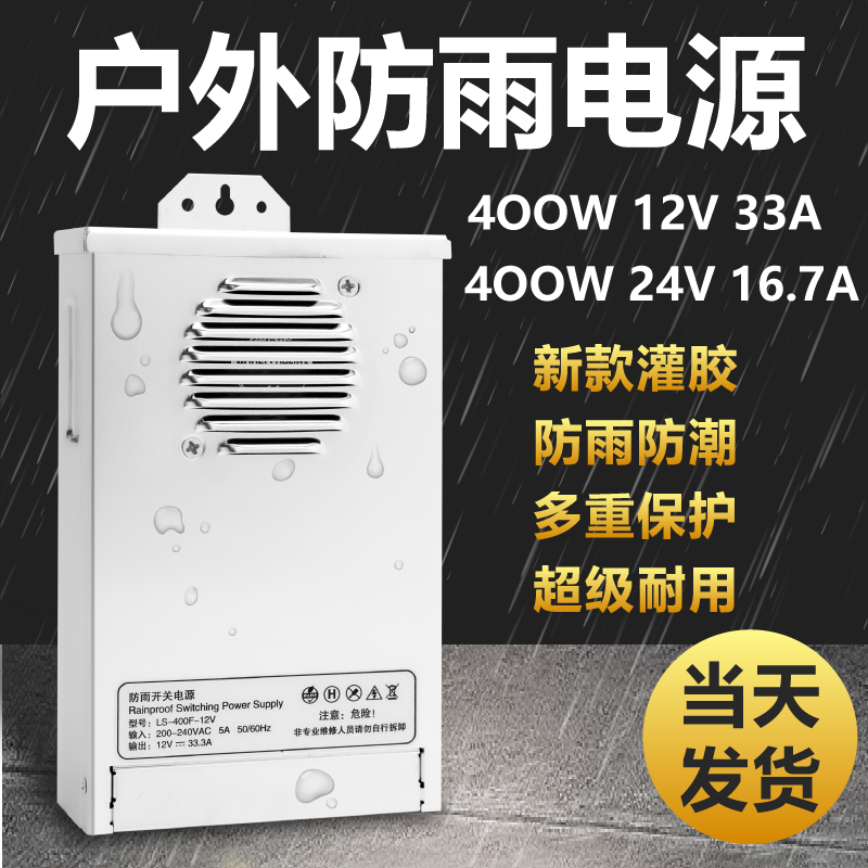 包邮12V33A400W防雨开关300w12V招牌发光字变压器LED灯带灯箱电源