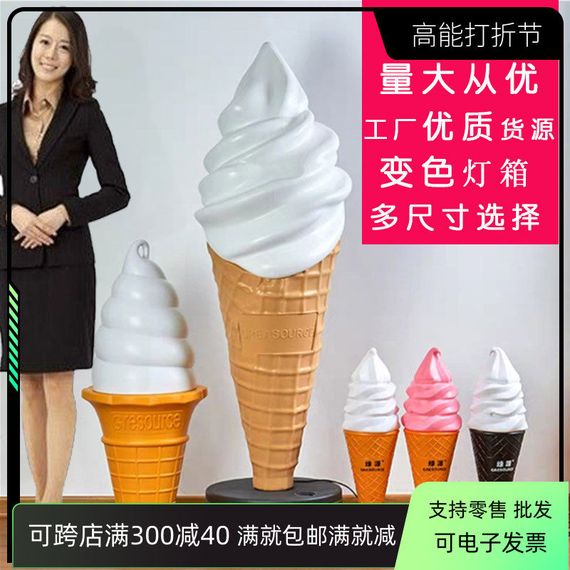 冰淇淋模型特大冰激凌甜筒奶茶汉堡店门口吧台装饰品发光商用灯箱