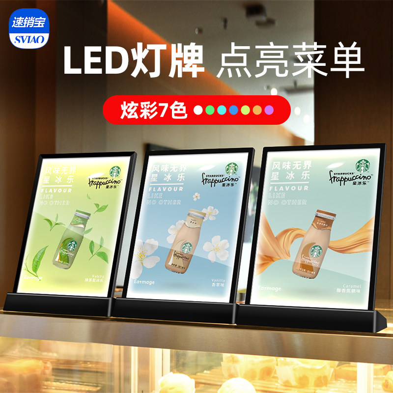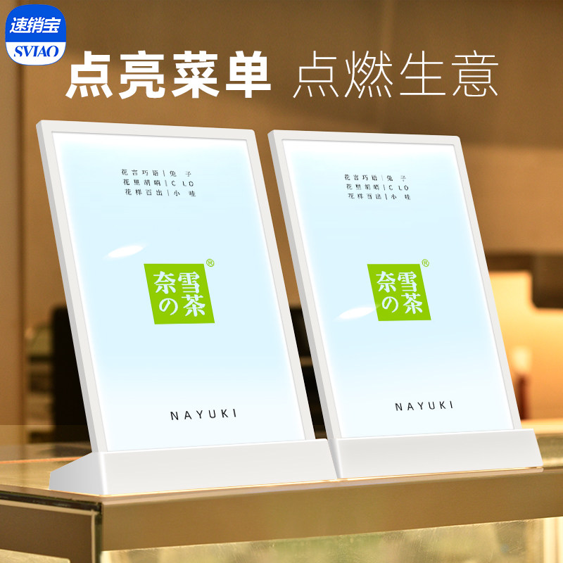 sviao速销宝 发光菜单展示牌奶茶店亚克力台卡菜谱价目表灯箱摆台菜品酒水单台牌高档立牌a4菜单设计制作桌牌