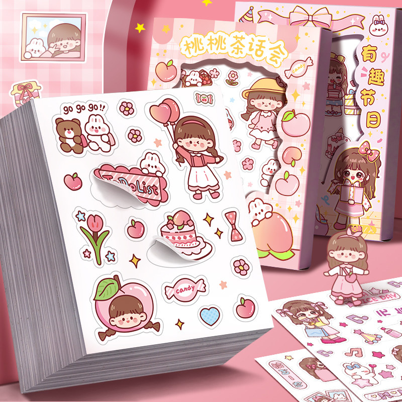 1000枚和纸手账素材贴纸手帐胶带收纳本贴纸册儿童女孩少女心粘贴贴画手杖离型本咕卡装饰小图案套装卡通可爱