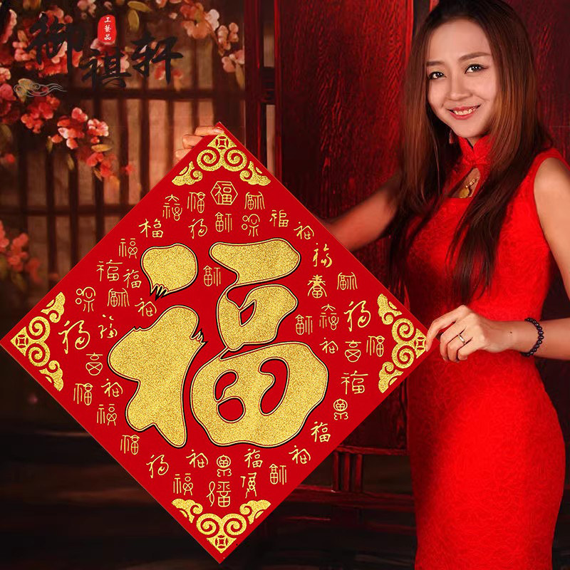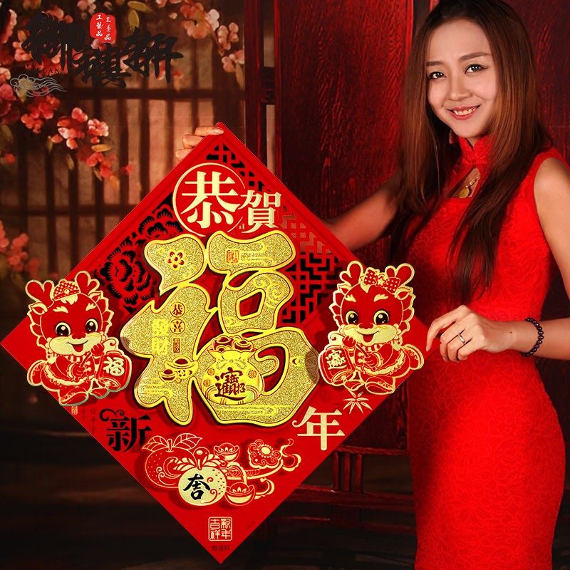 2024龙年画新款植绒布大号春节过新年装饰立体自粘福字门贴纸贴墙
