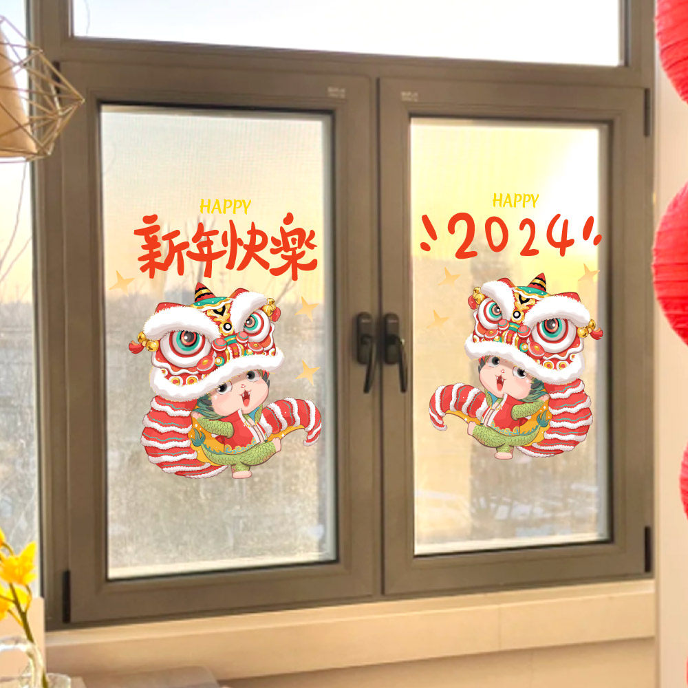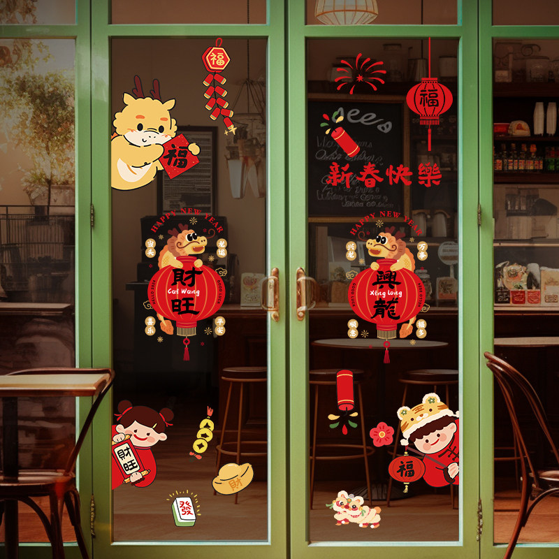 2024龙年新年装饰氛围贴纸橱窗玻璃门静电贴场景布置元旦贴画窗贴