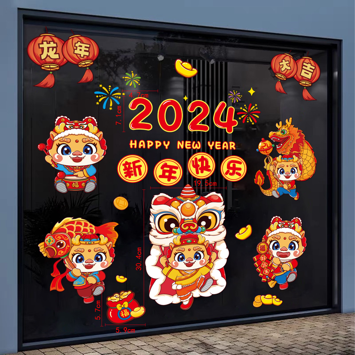 2024龙年新年静电贴玻璃门贴纸春节过年商场装饰场景布置窗花贴画