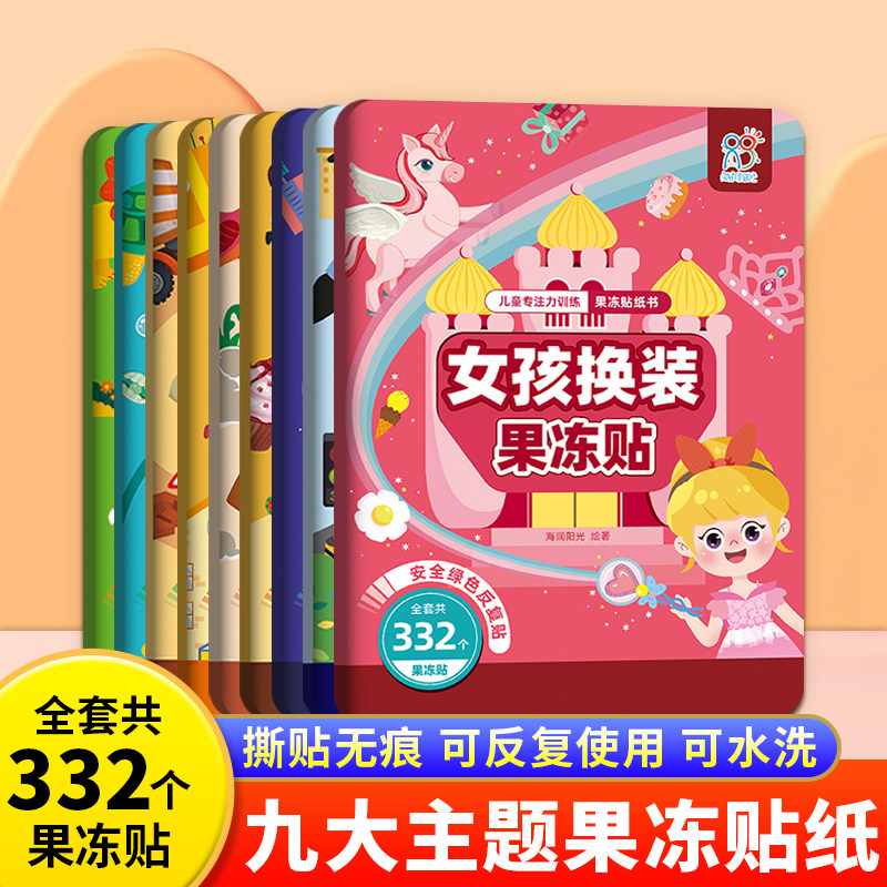 儿童趣味果冻贴纸书女孩益智玩具宝宝专注力反复粘贴贴画水果动物