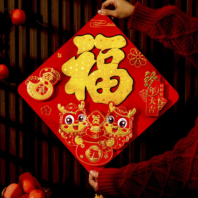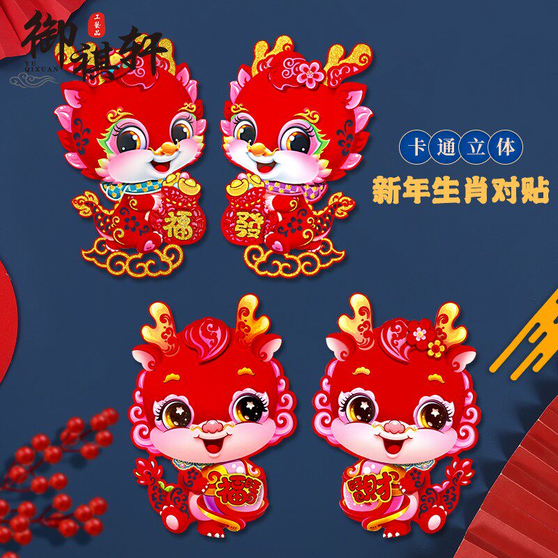 2024新年龙年春节立体福字门贴新款过年生肖对贴纸窗花墙贴画装饰