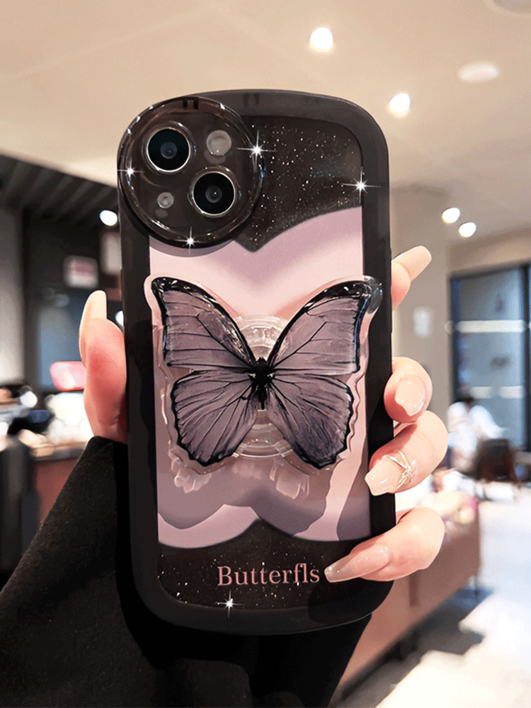 紫色蝴蝶适用vivox90手机壳x80新款x70pro+保护套x60女s16硅胶s15/s12/s10/s9/s7带支架y77e全包y52s创意iqoo