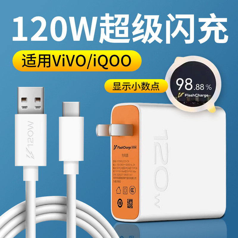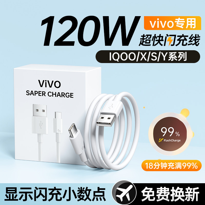 120W充电线适用于iqoo5pro/6/7/8快充数据线vivox100正品9超级原装neo5手机6atypec充电器线66w加长10/11闪冲