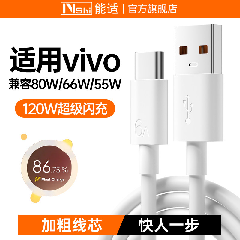 能适type-c数据线120w快充适用vivo双引擎iqoo7手机tpyec充电器线6a安卓正品pro闪充专用超级安卓2米66w加长