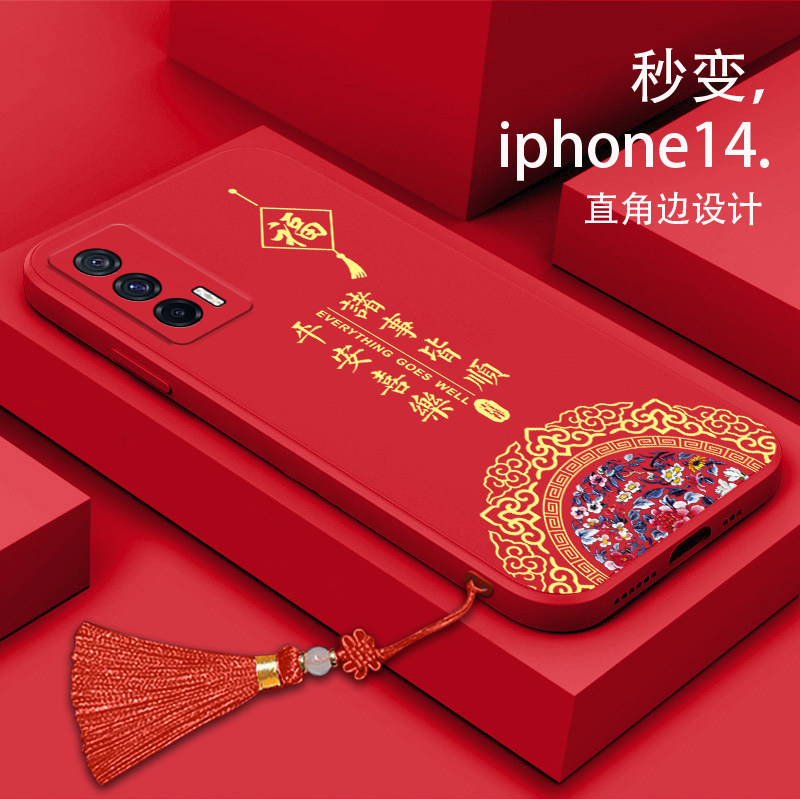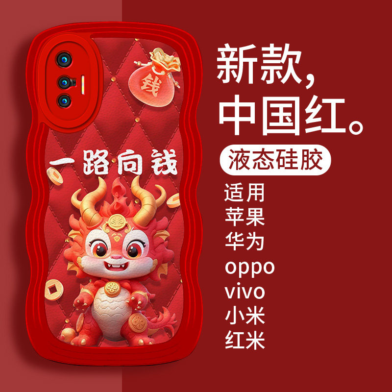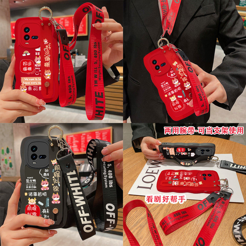 好运爆棚龙年本命年新年适用iQOO10手机壳vivo新款11s挂绳iq8属龙iq00爱酷5pro腕带3红色z7过年z8x喜庆u3女款