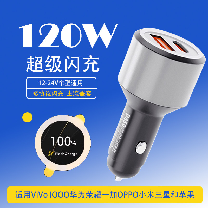 120W车载充电器适用vivo手机x100闪充点烟器iqoo12neo8快充车充11