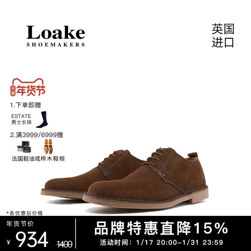 Loake英国进口经典德比鞋时尚男士牛反绒手工休闲低帮皮鞋Mojave