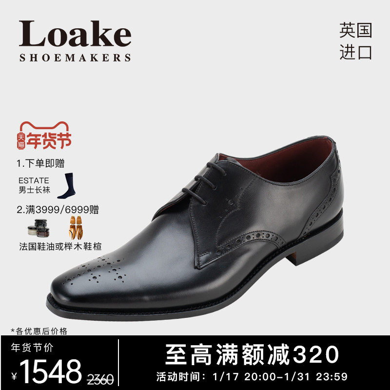 Loake英国进口经典德比鞋男士布洛克雕花皮鞋超轻大底皮鞋PERSEUS