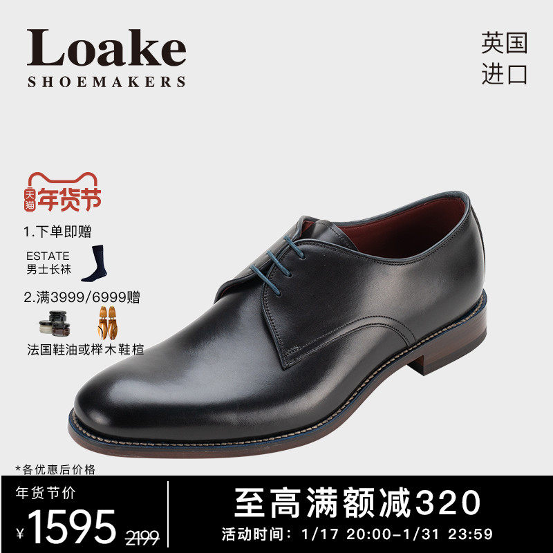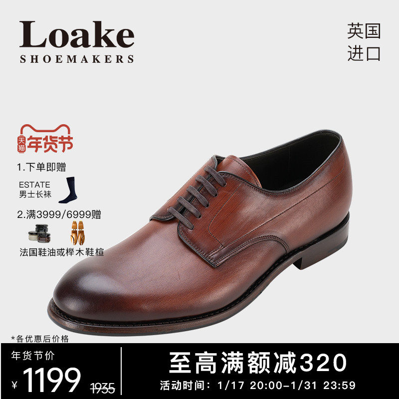 Loake英国进口手工固特异工艺头层牛皮经典德比男士皮鞋DRAKE