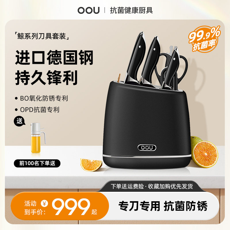 OOU黑鲸刀具厨房套装组合菜刀家用全套厨房专用切菜刀德国钢厨刀