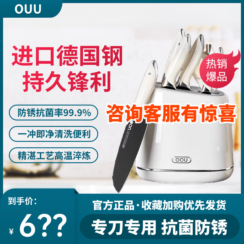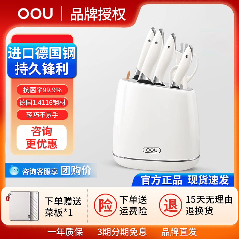 OOU白色德国钢材不锈钢刀具厨房套装组合菜刀家用切菜板砧板刀架