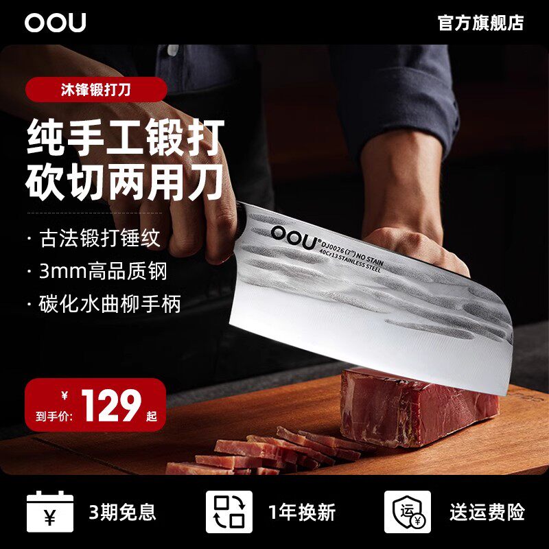 OOU菜刀家用切菜切肉切片正品厨师专用刀具厨房网红女士不锈钢小
