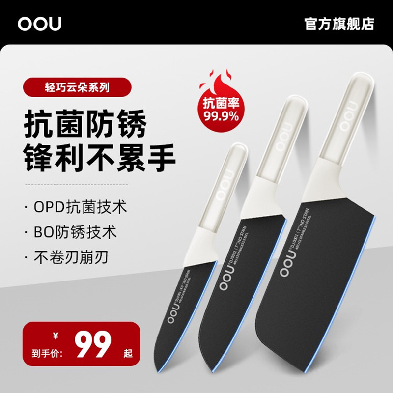 OOU菜刀家用正品厨师专用切菜刀水果刀切片刀具厨房斩切锋利抗菌