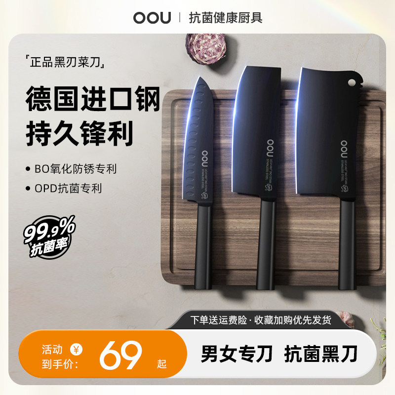 OOU切菜刀女刀家用厨房刀具套装厨师专用不锈钢黑刀黑刃 抖音同款